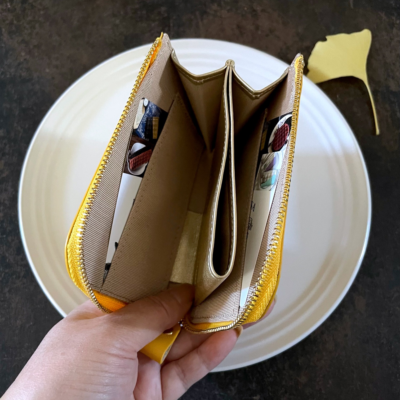 去年、特別版として革の銀杏色チョコ・ファスナーミニ財布。