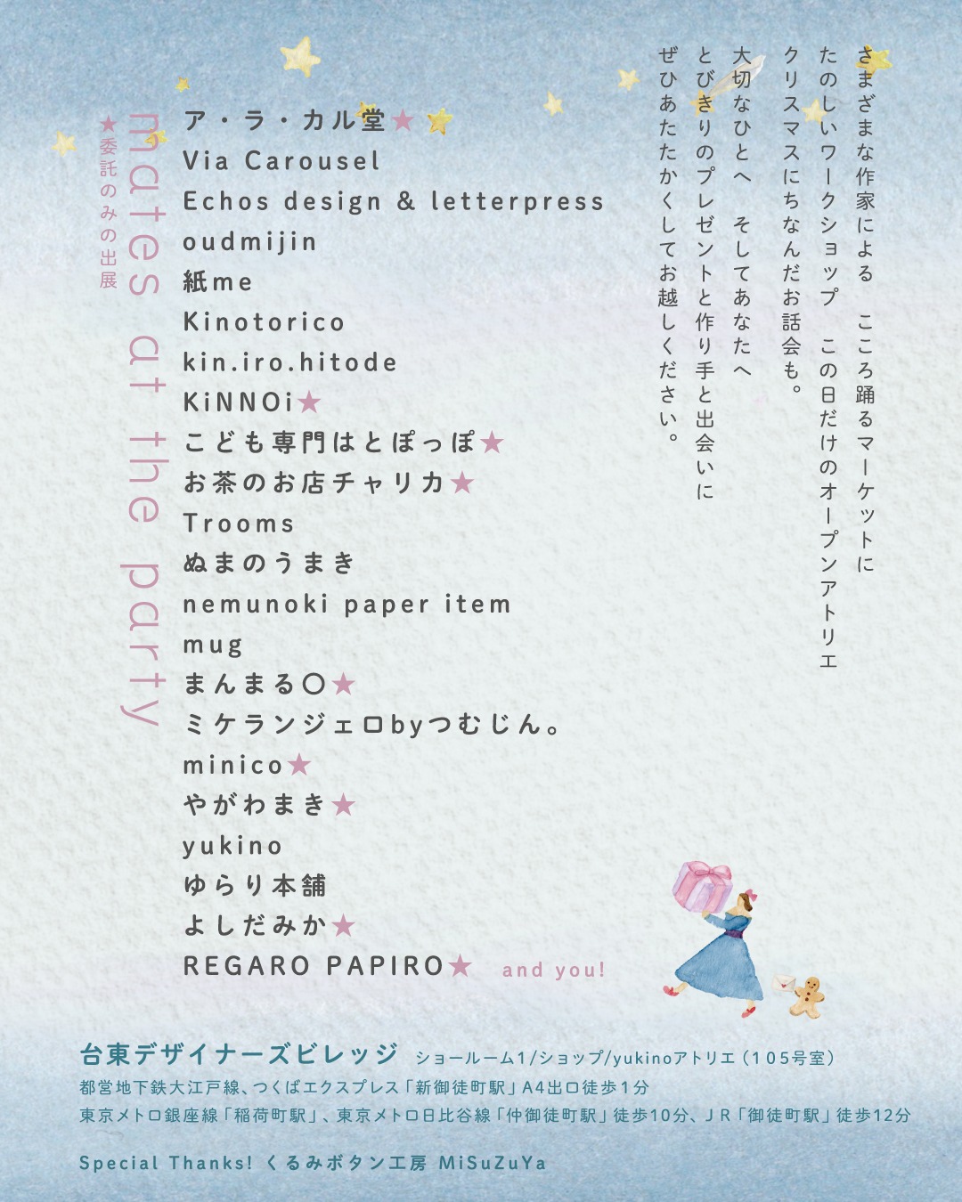 今年も素敵な紙雑貨、お菓子、アクセサリーやWSと