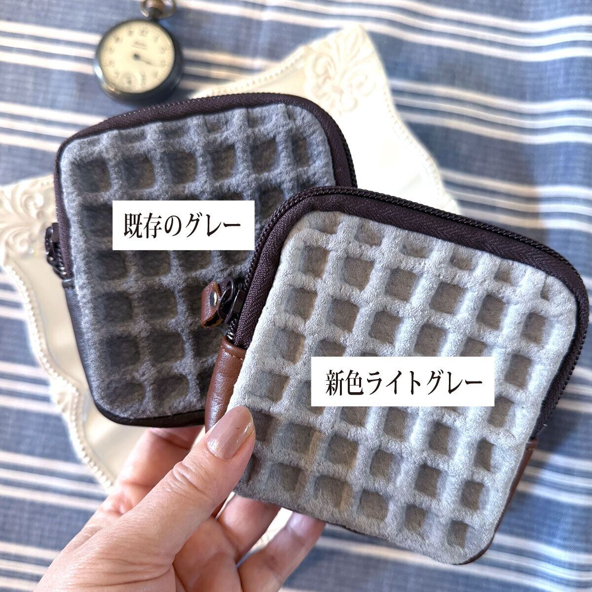 [2025年処暑特別セット]薄雲グレー・ワッフル 革小物4点セット