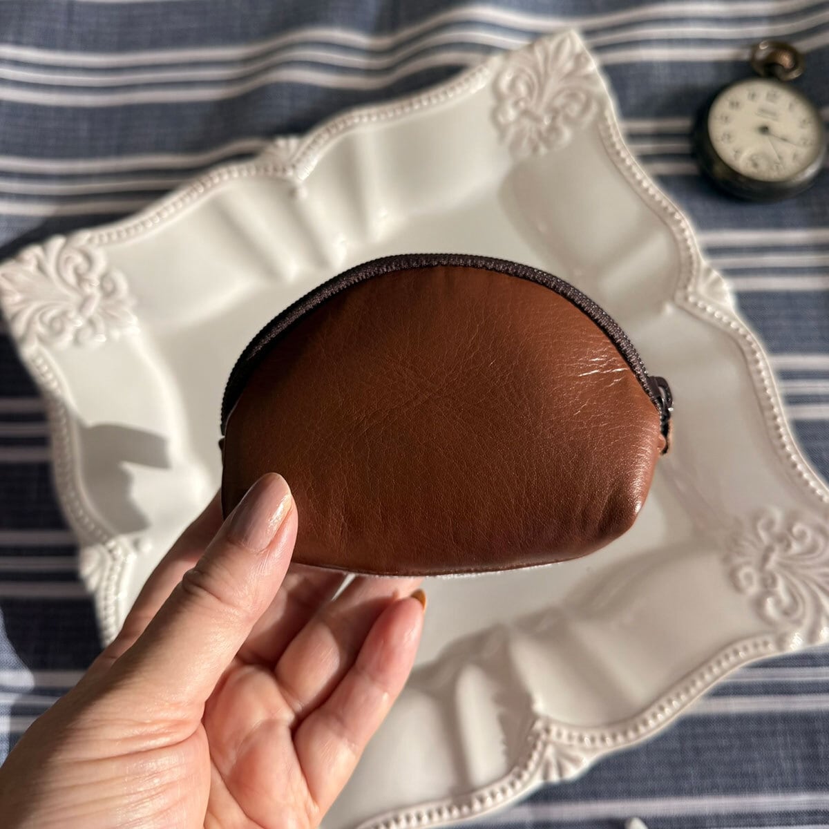 3)革のワッフル・半月ポーチ