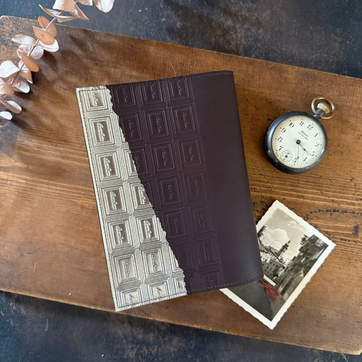 時を重ねて味わう、革と銀箔のブックカバー