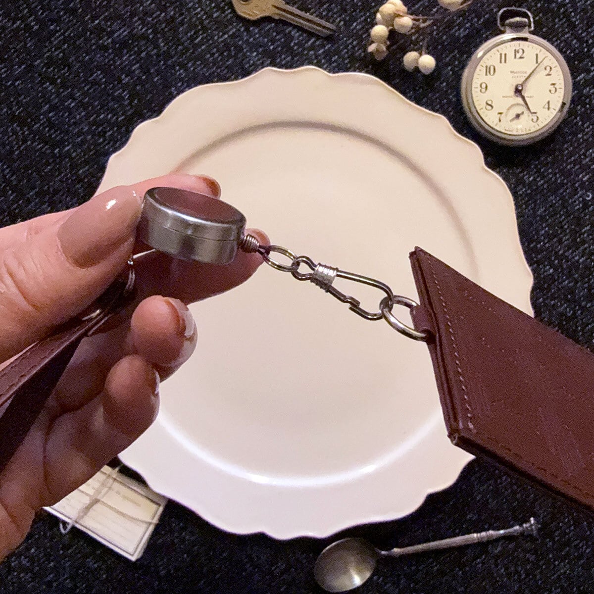 リール付きストラップで“伸びて、戻る”ワンアクションが叶います。