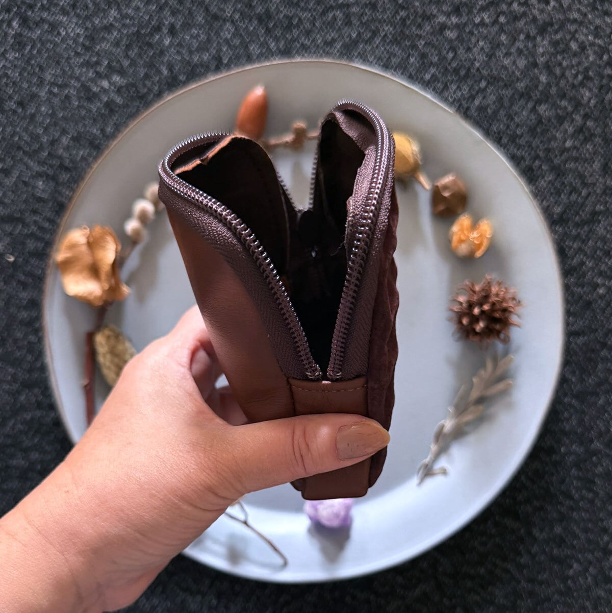 特別版:革のワッフル・スクエアポーチ(チョコ)