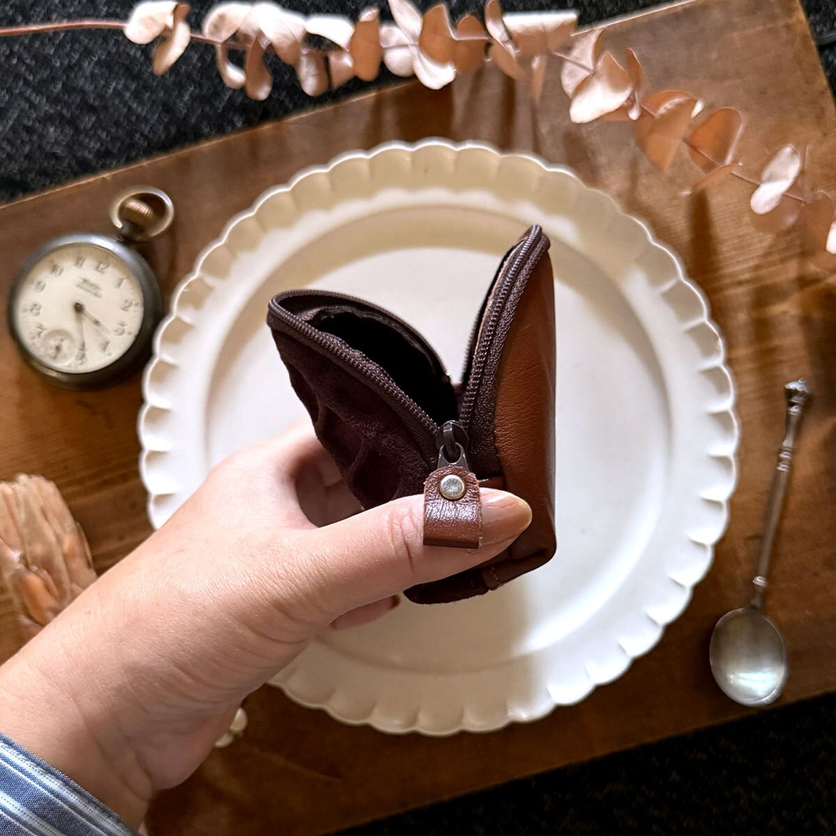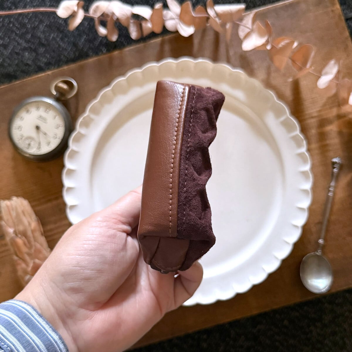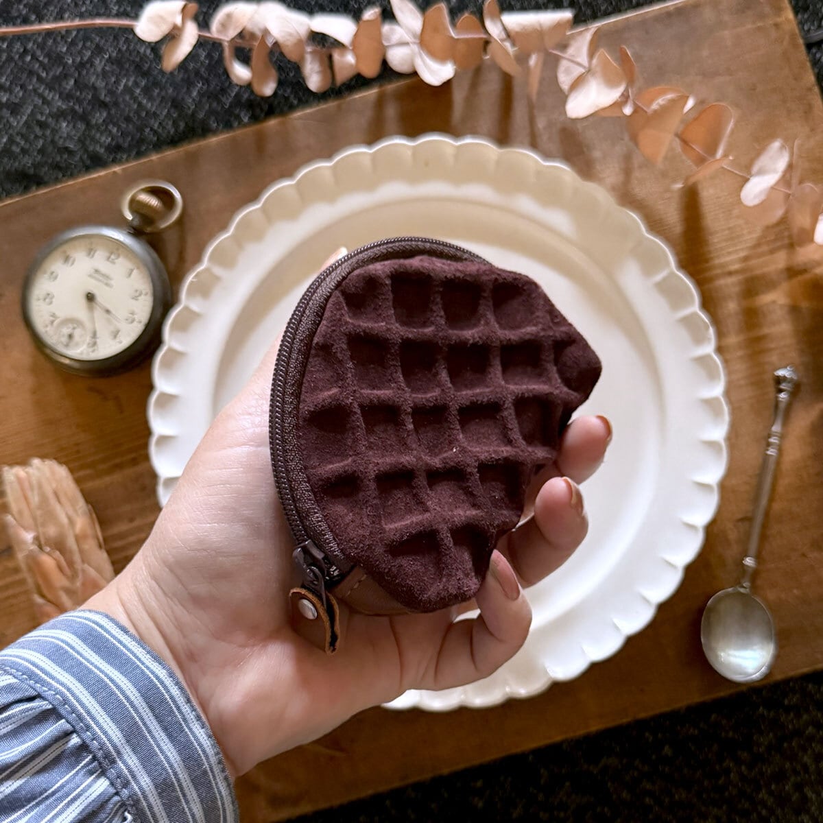 特別版:革のワッフル・半月ポーチ(チョコ)