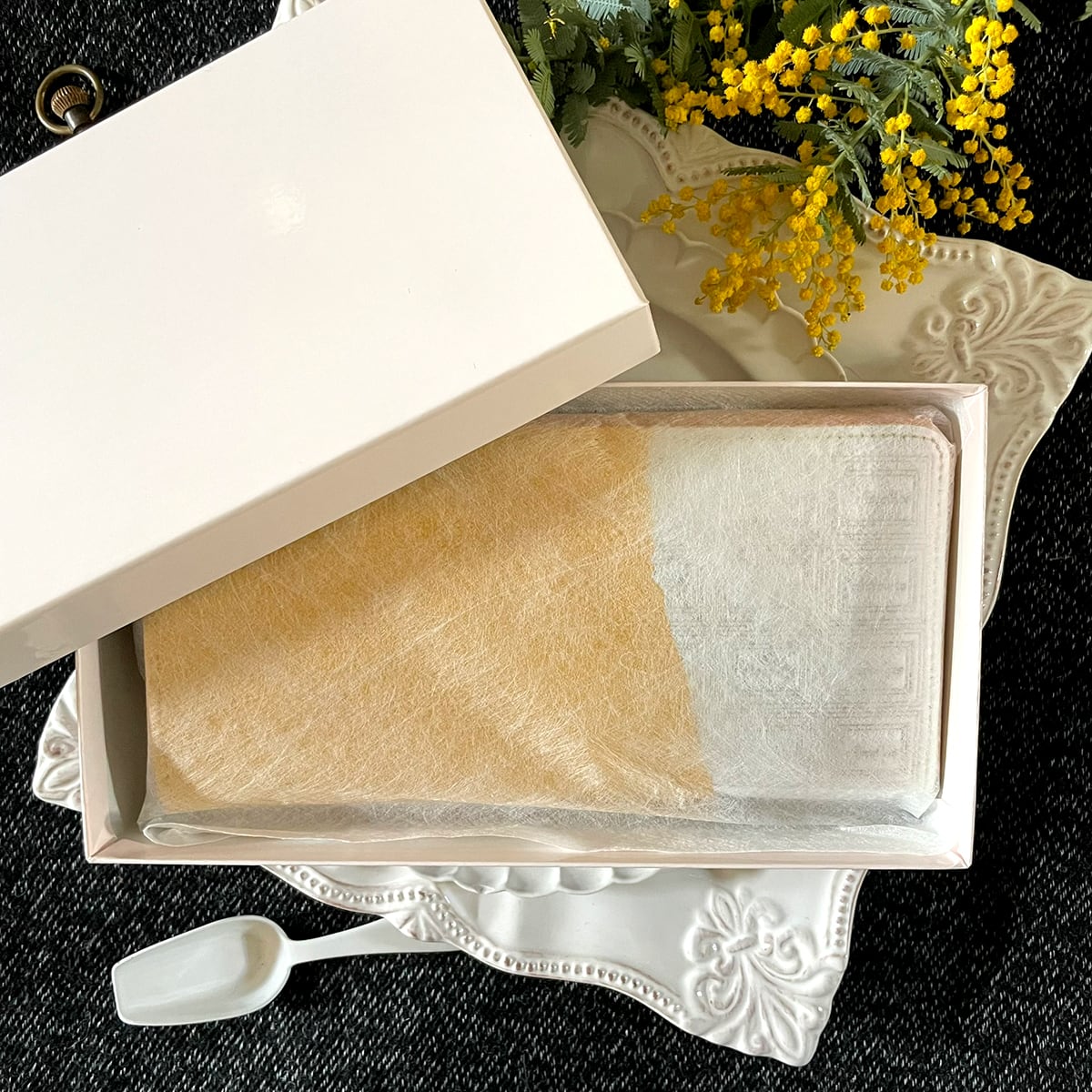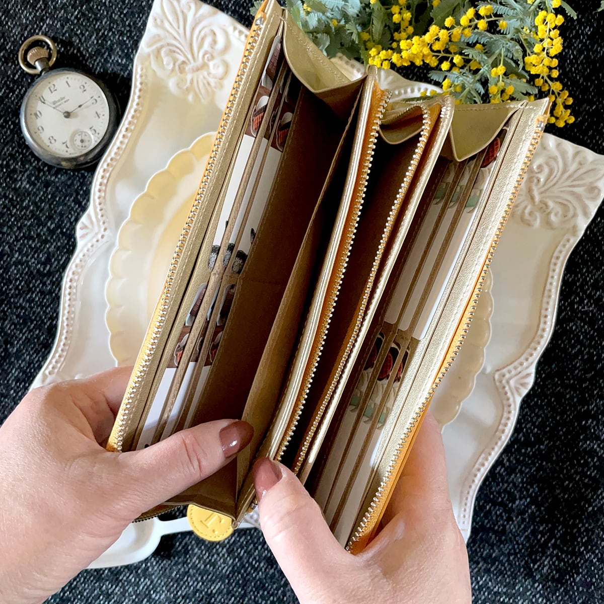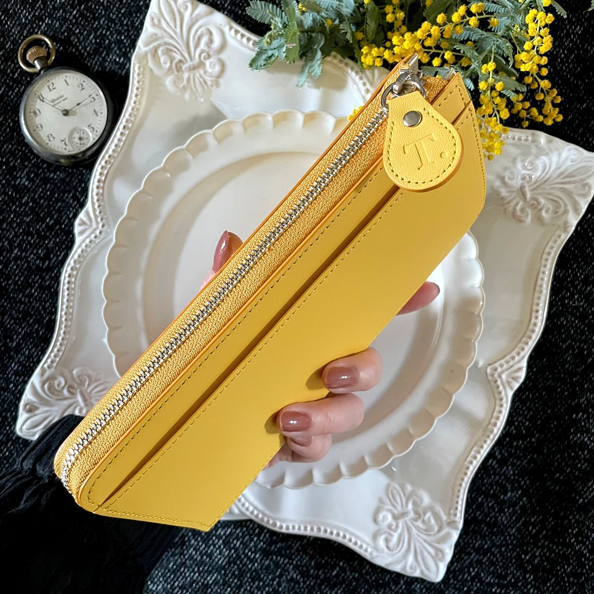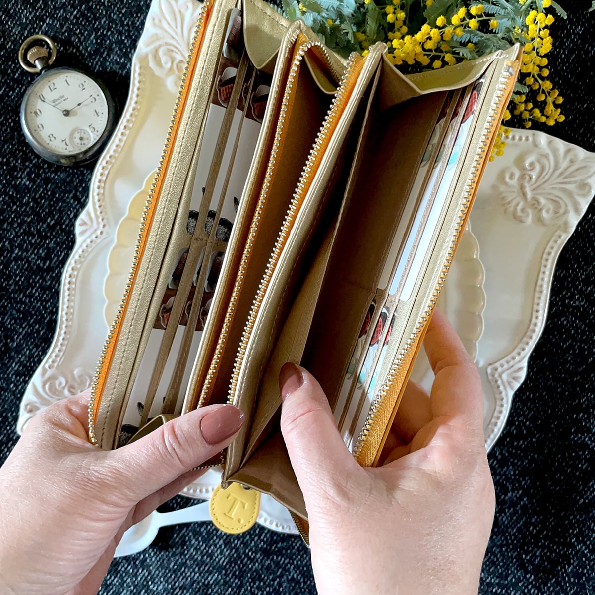 訳あり:革のミモザ色チョコ長財布(銀の包み紙)