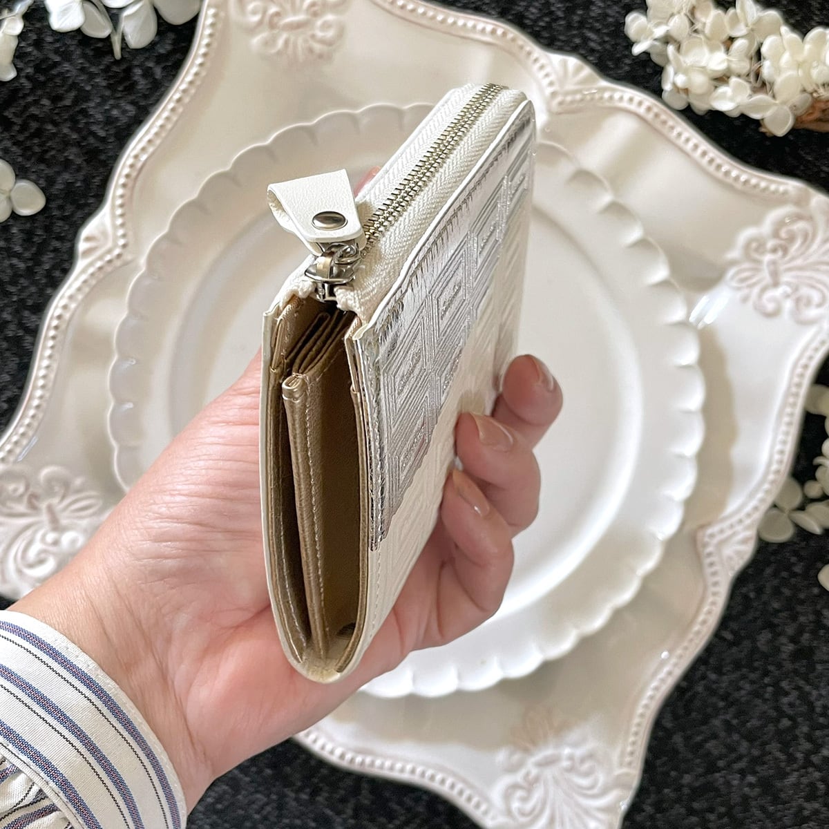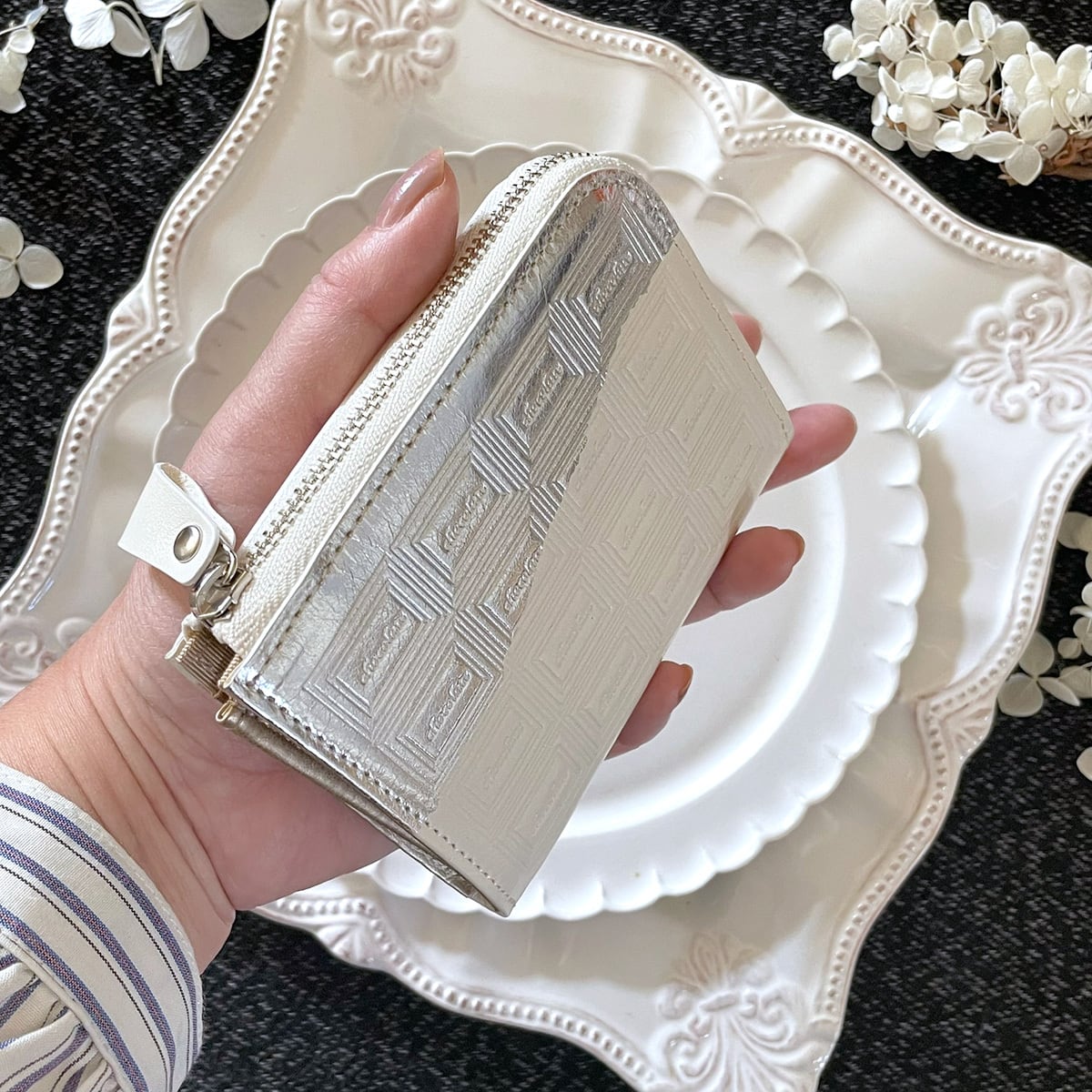 ◆特別版・革のバニラホワイトのチョコ ファスナーミニ財布(銀の包み紙)