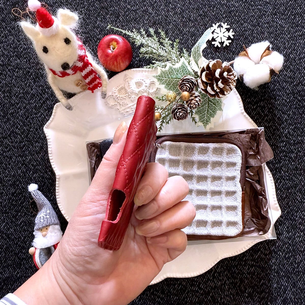 [2025年冬の特別セット]:革のワッフル(薄雲)+革のチョコ・キーホルダー他