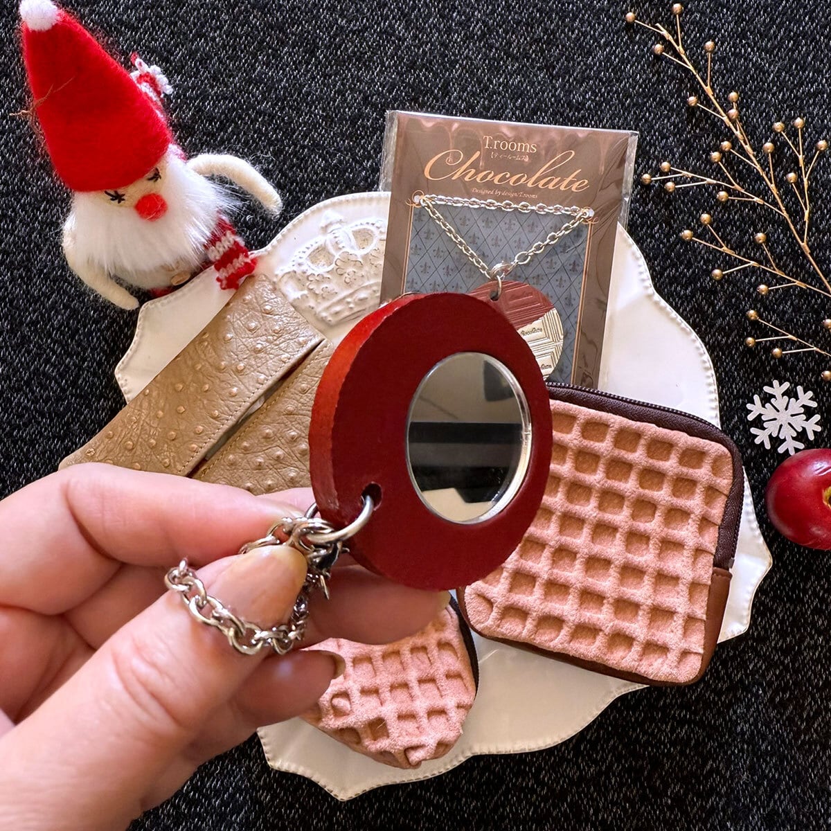 ・革の赤チョコ ミラーチャーム (銀の包み紙)
