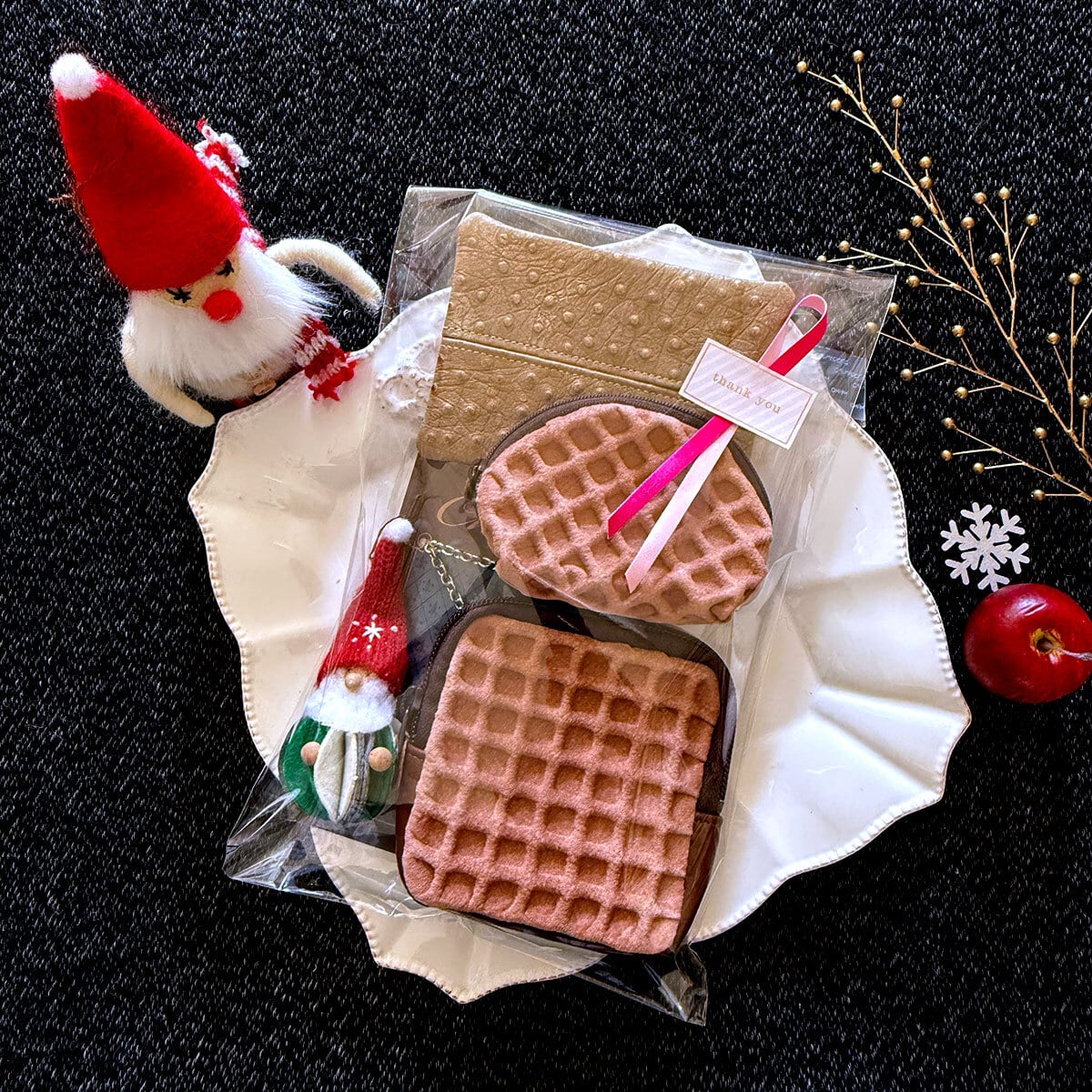 [2025年冬の特別セット]:革のワッフル(アプリコット)+革の赤チョコ・ミラー他