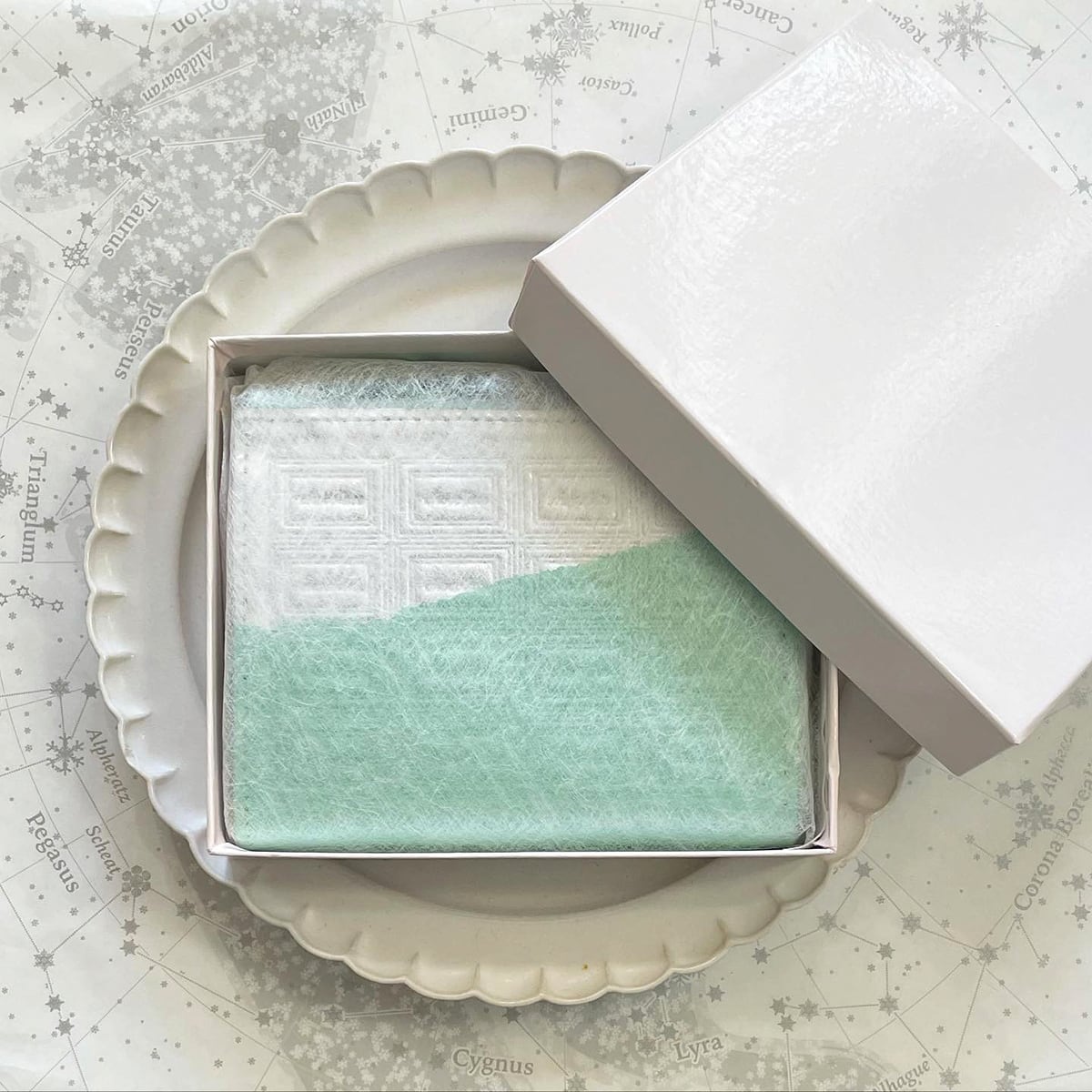 爽やかなミント色はオリジナルで染色した牛革を使い