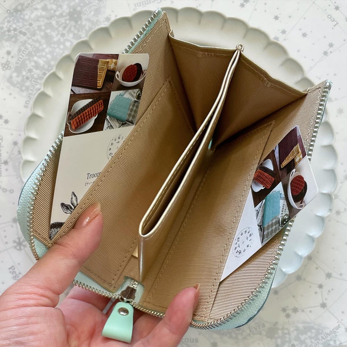 ◆革のチョコ ファスナーミニ財布 ミントチョコ×銀