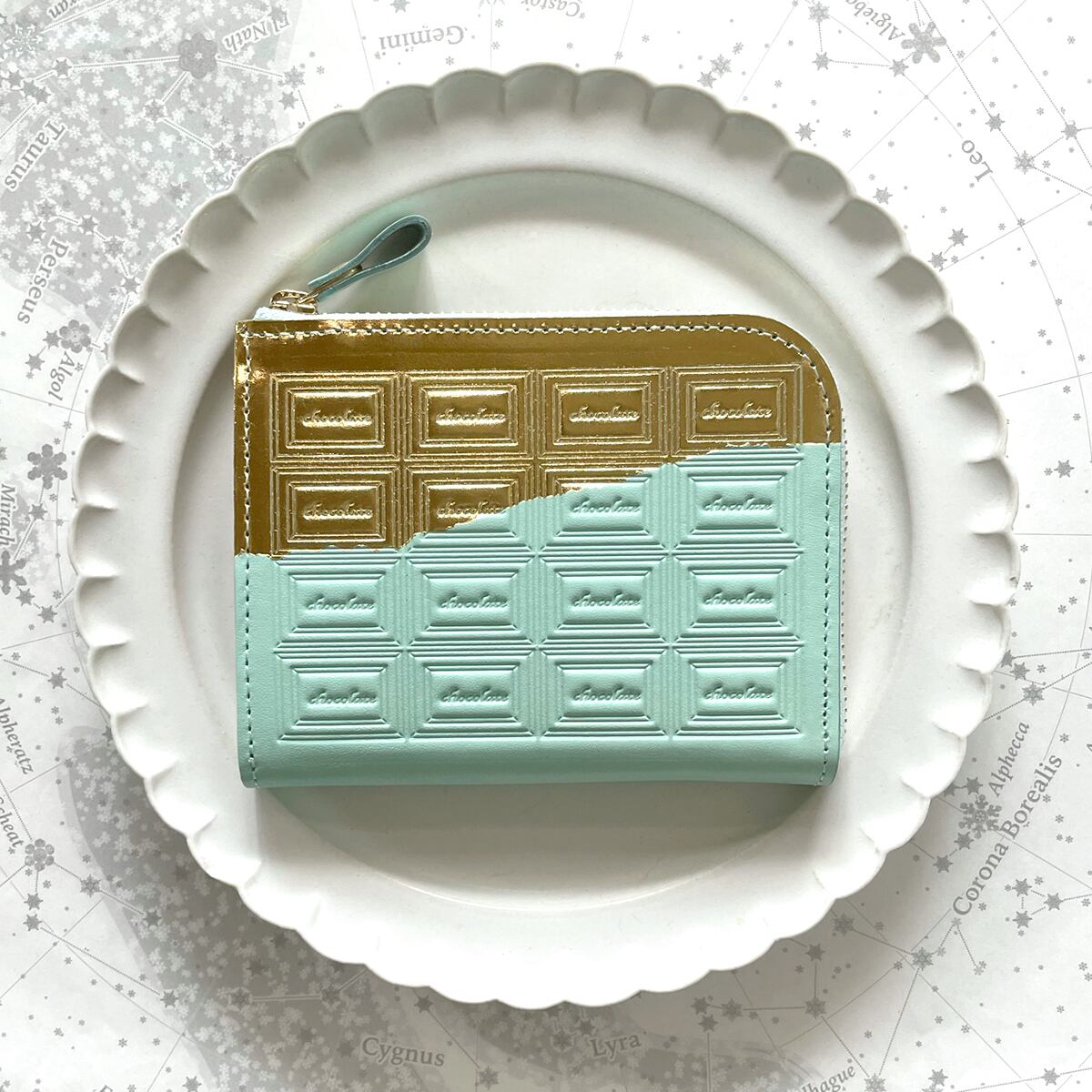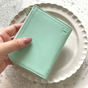 ◆革のチョコ ファスナーミニ財布 ミントチョコ×金