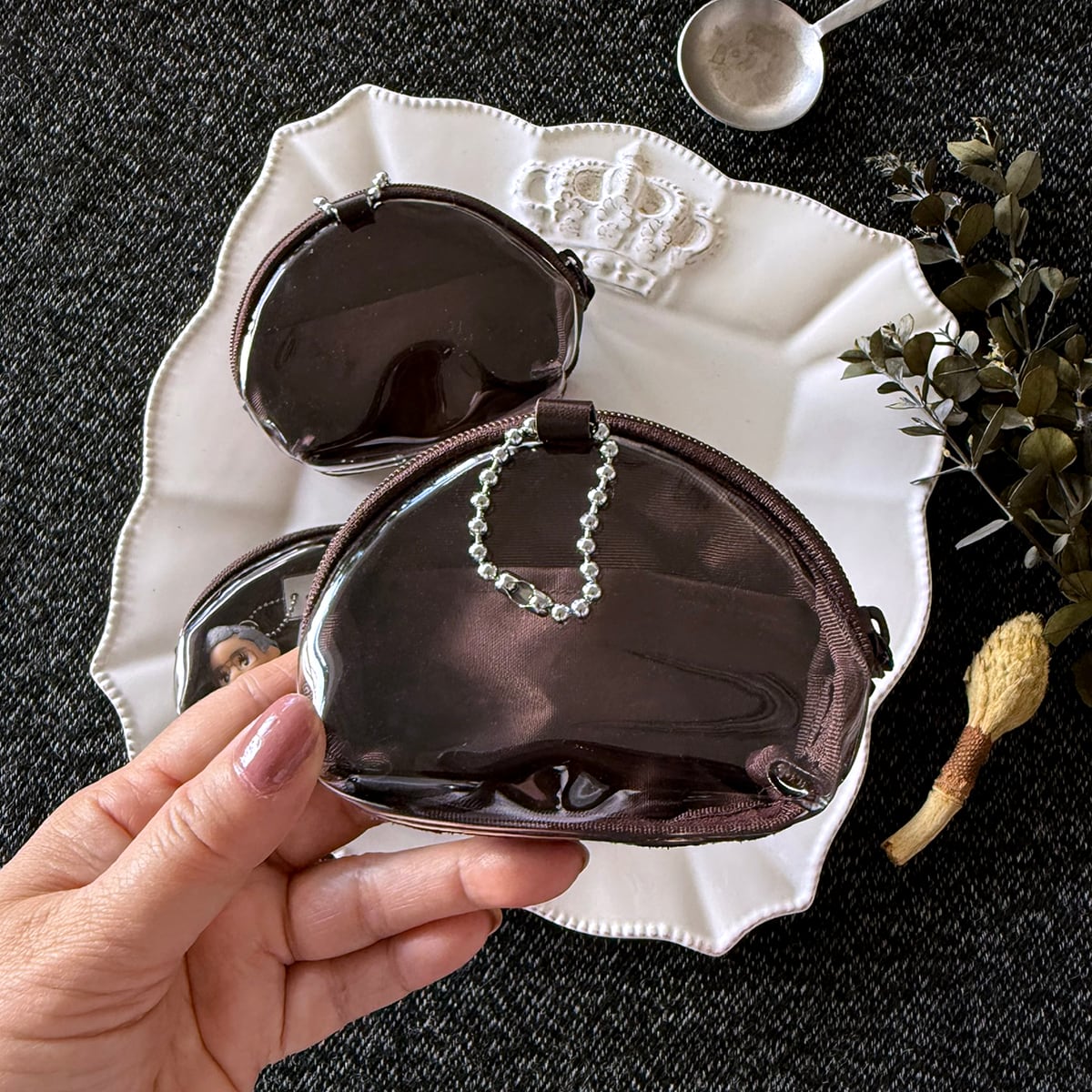◆特別版:革のワッフル・半月クリアポーチ(抹茶)