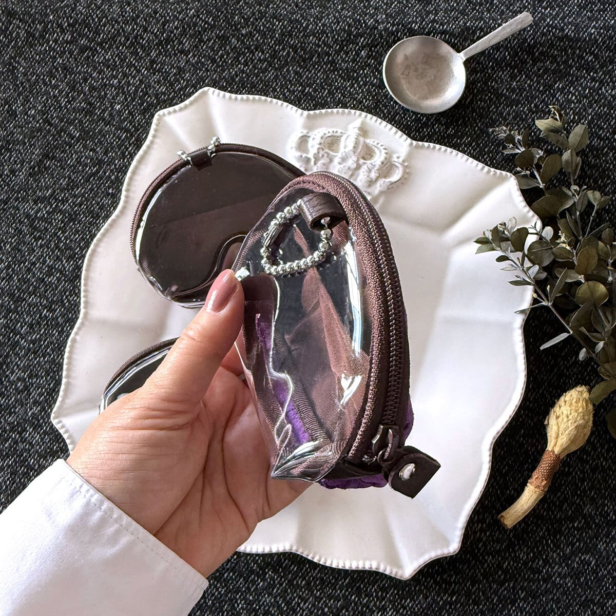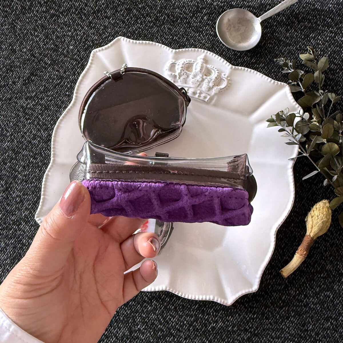 ◆特別版:革のワッフル・半月クリアポーチ(菫色)