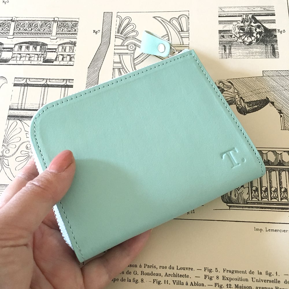 ◆革のチョコ ファスナーミニ財布 ミント×銀