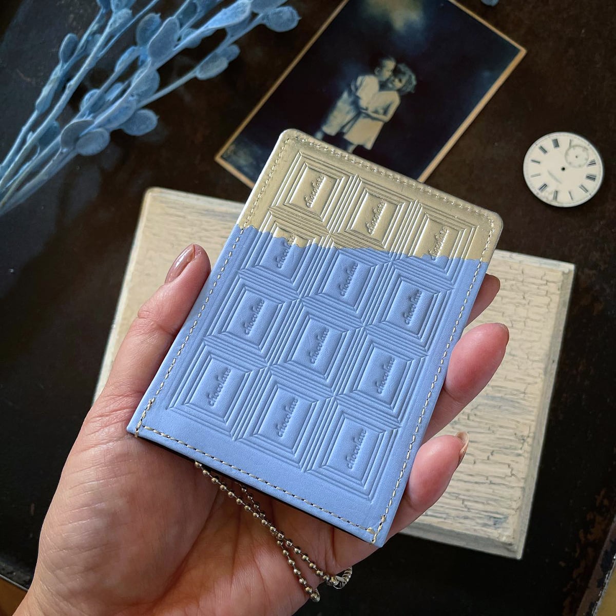 革の紫陽花色チョコ パスケース(銀の包み紙)
