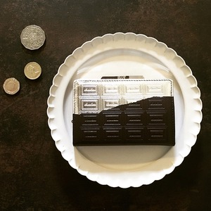 上質な革にチョコレートの版を押したカードケース兼財布。
