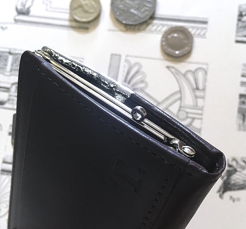 革のビターチョコ がま口カードケース兼財布(銀の包み紙)