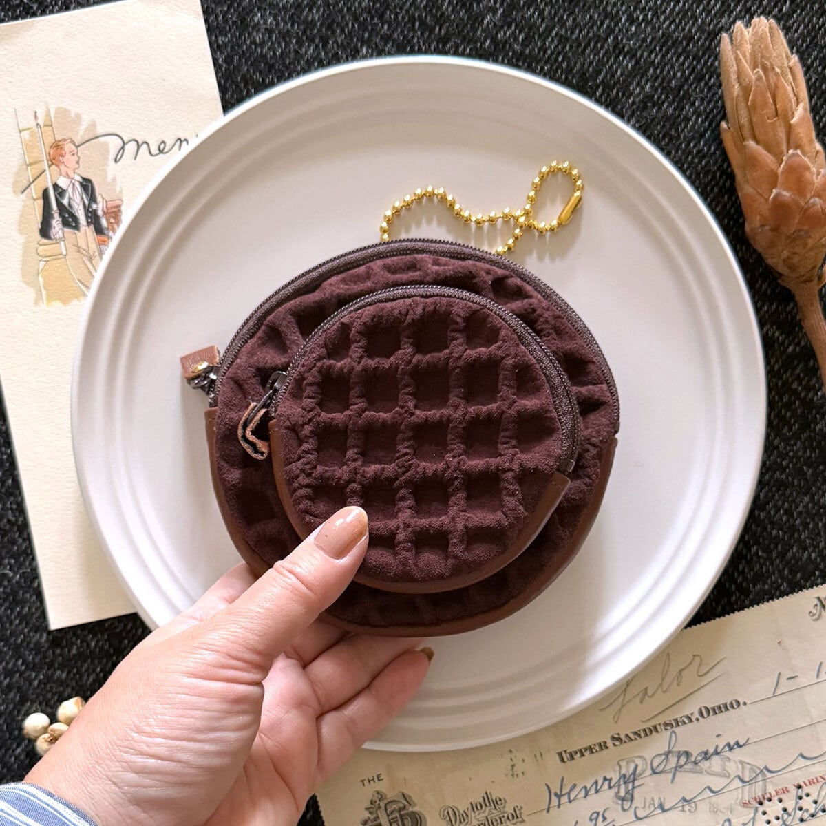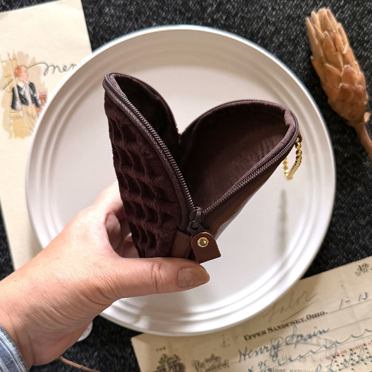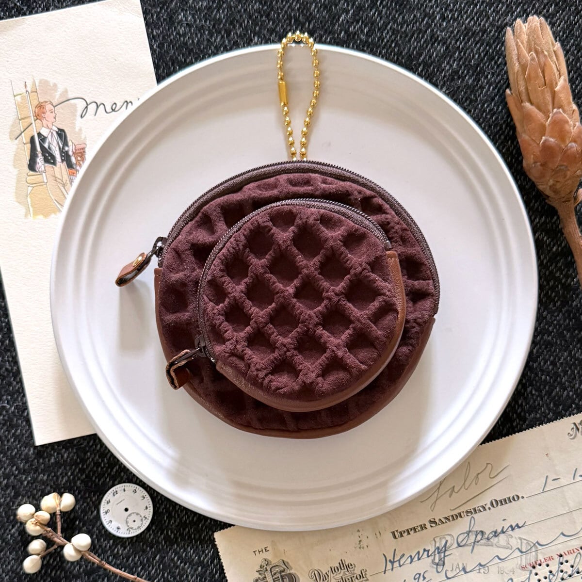 特別版:革のワッフル・サークルポーチ(チョコ)