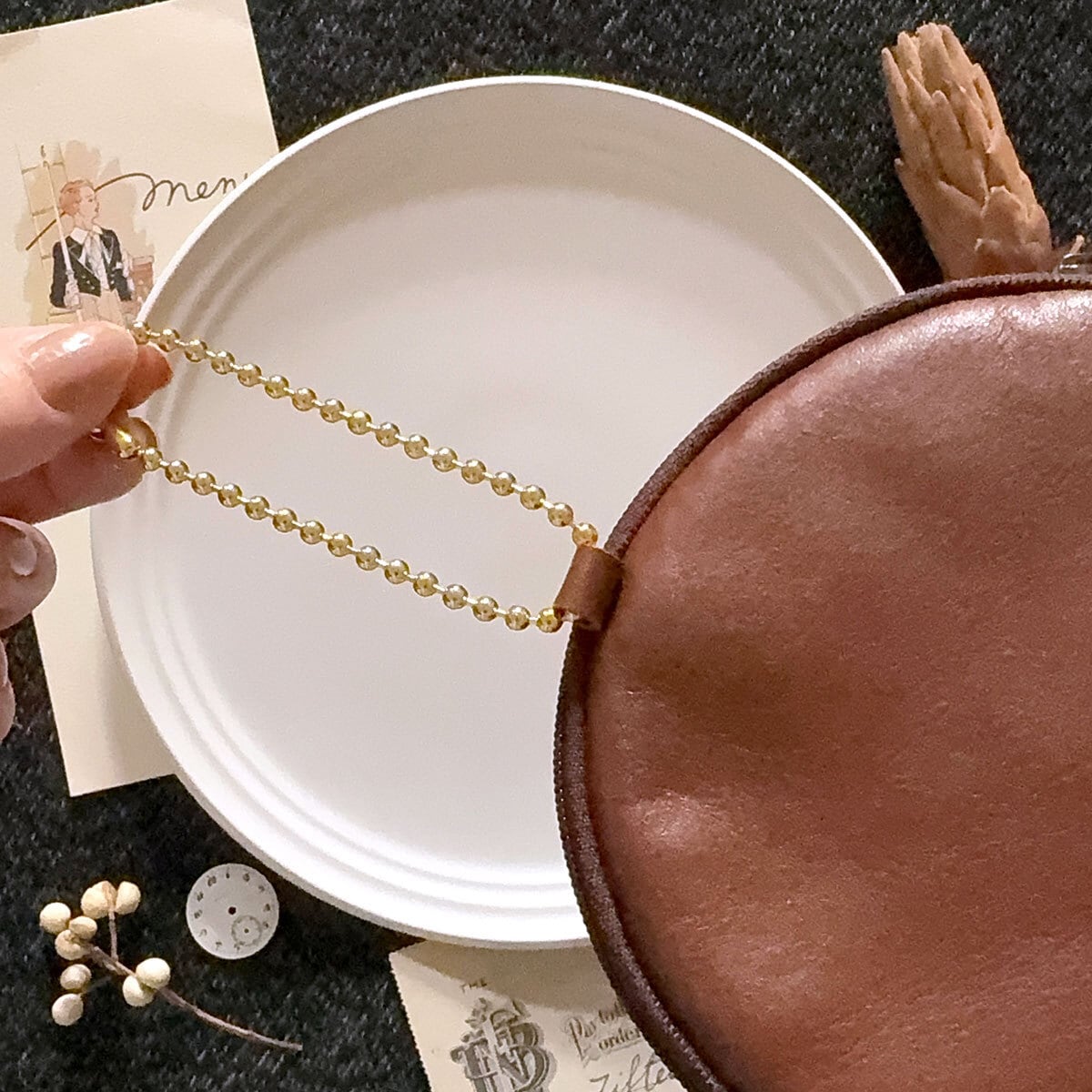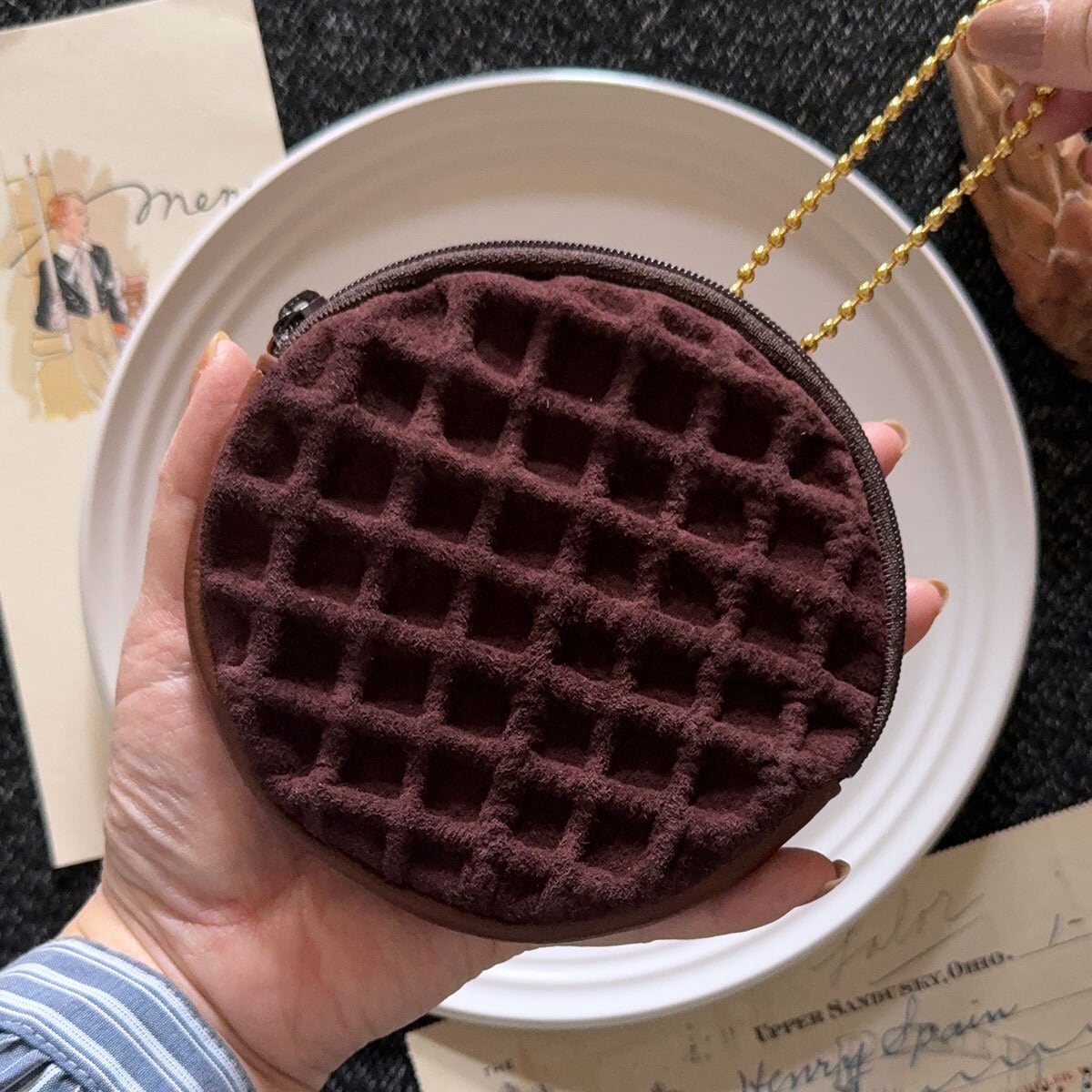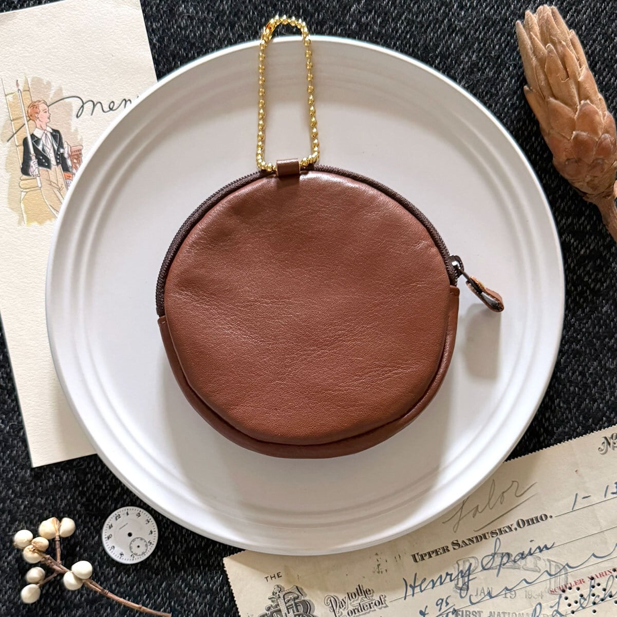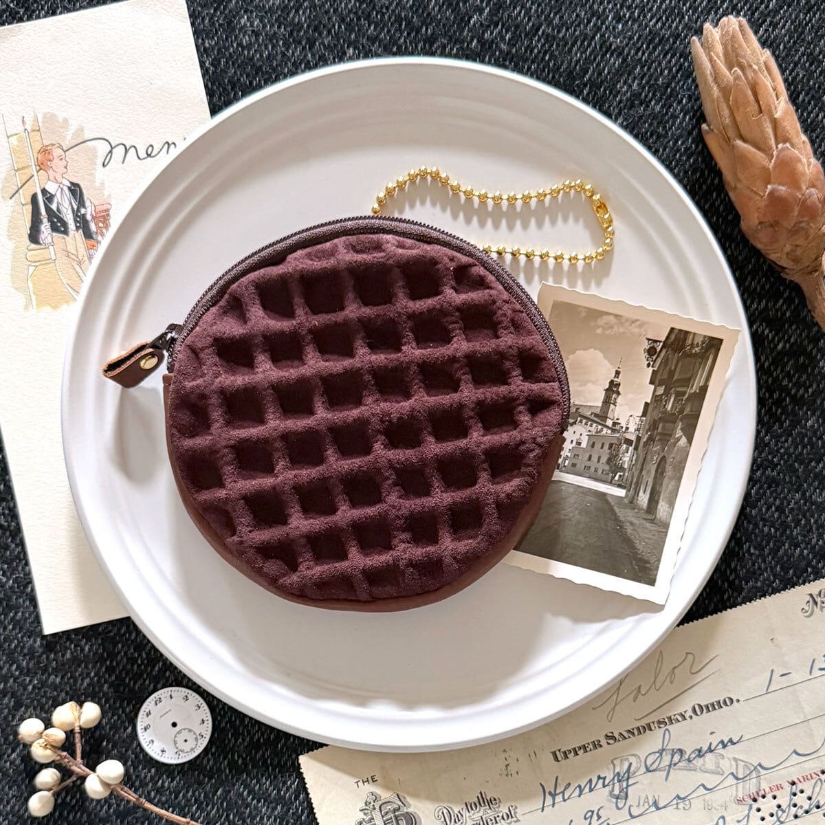 特別版:革のワッフル・サークルポーチ(チョコ)