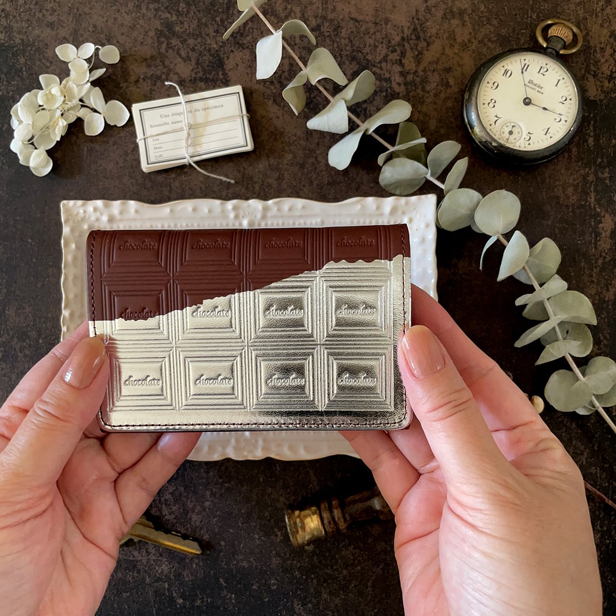 革のチョコ 名刺入れ スイート(銀の包み紙)
